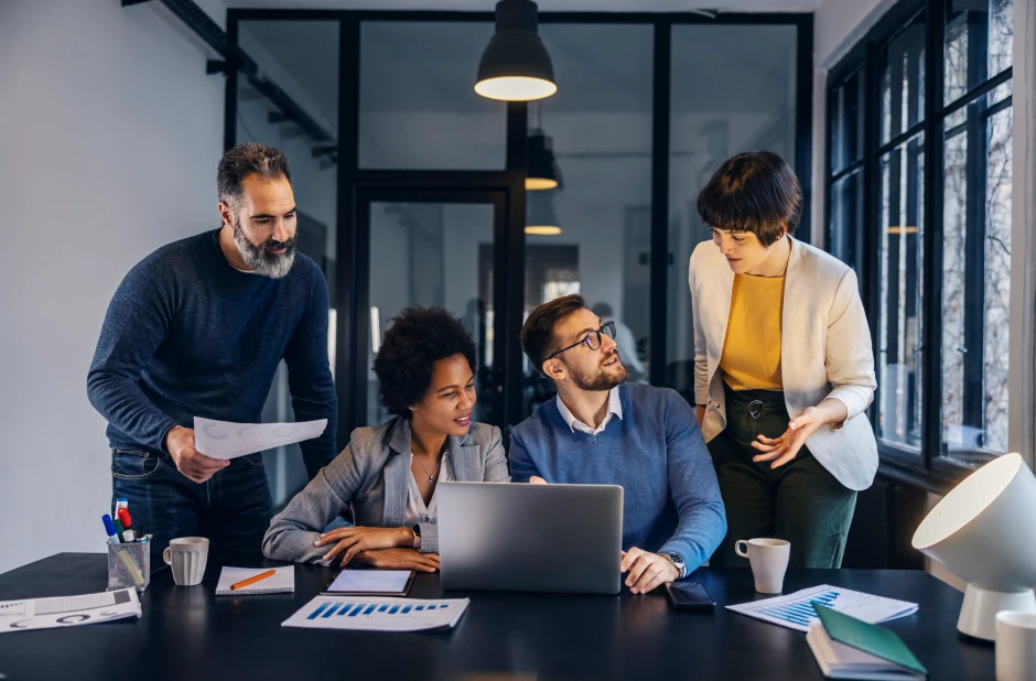 Serious confident our curly bearded office